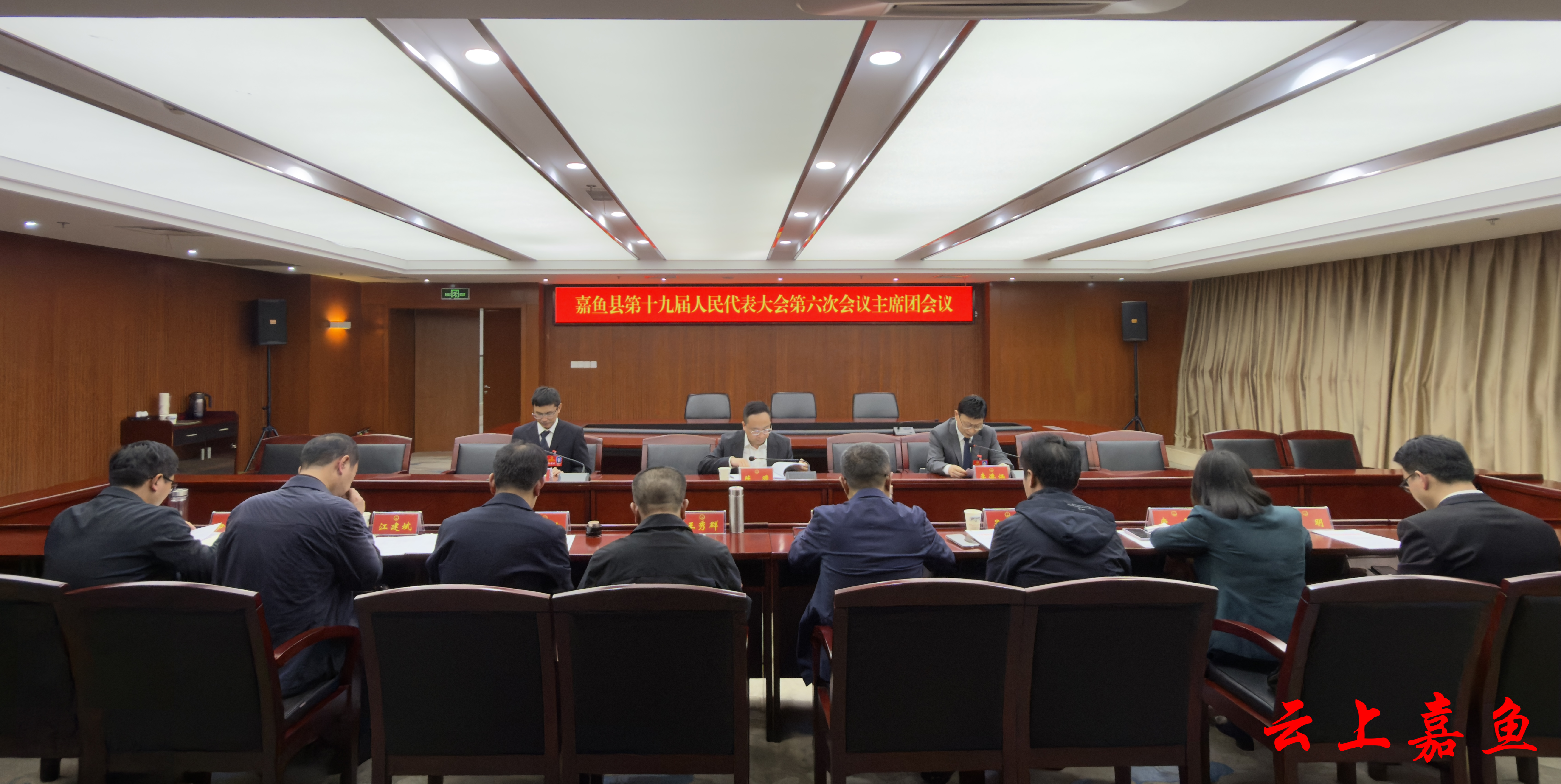 4月16日,嘉鱼县第十九届人民代表大会第六次会议代表团召集人会议召开。县委副书记、代县长陈瞻出席会议,县人大常委会党组书记、主任李德炳主持会议,县领导费海喜、郑德朝、王秀群、吴军、房金文出席会议。